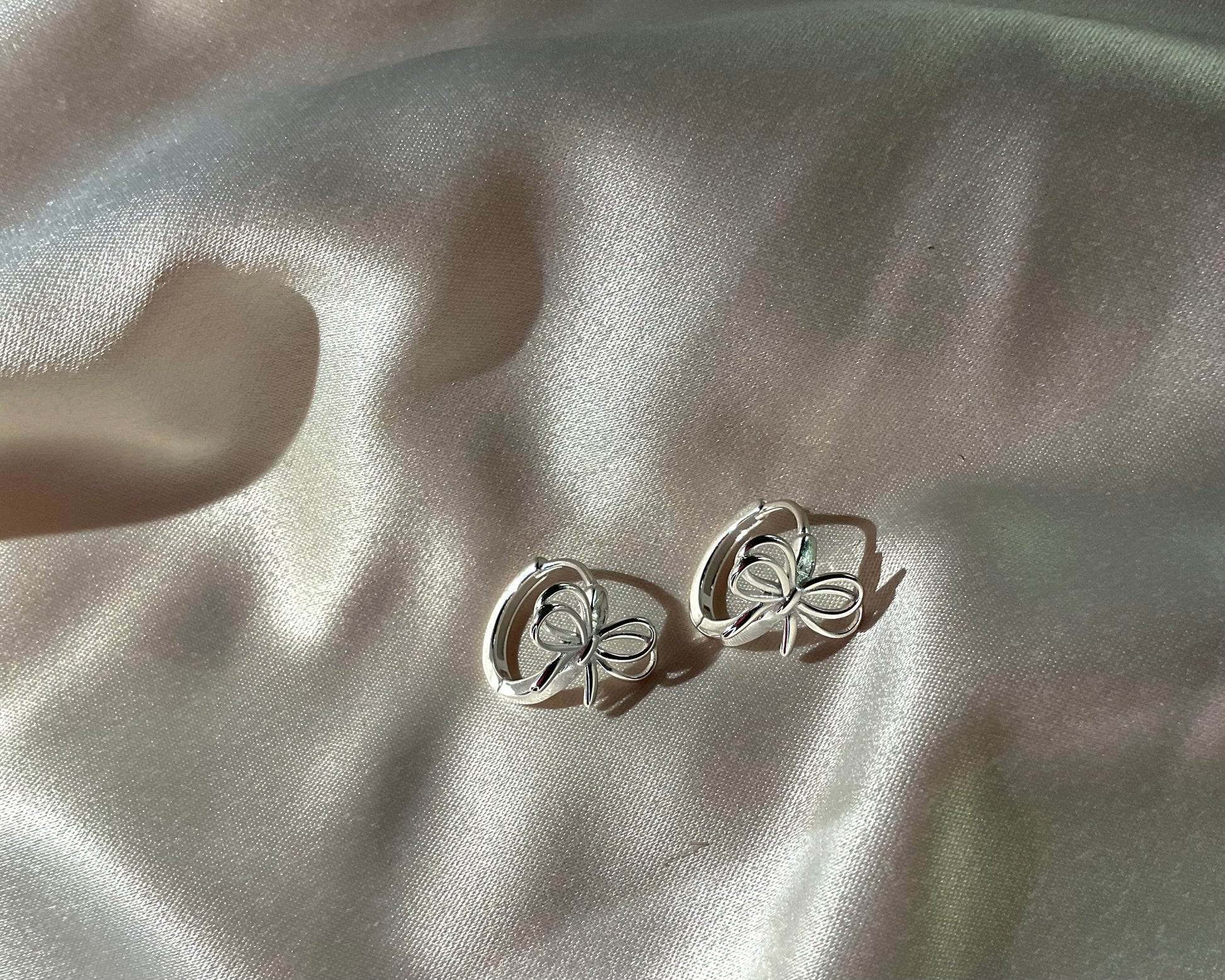 Orecchini Fiocco Mini Hoops Argento - gioiello stile coquette acciaio inossidabile