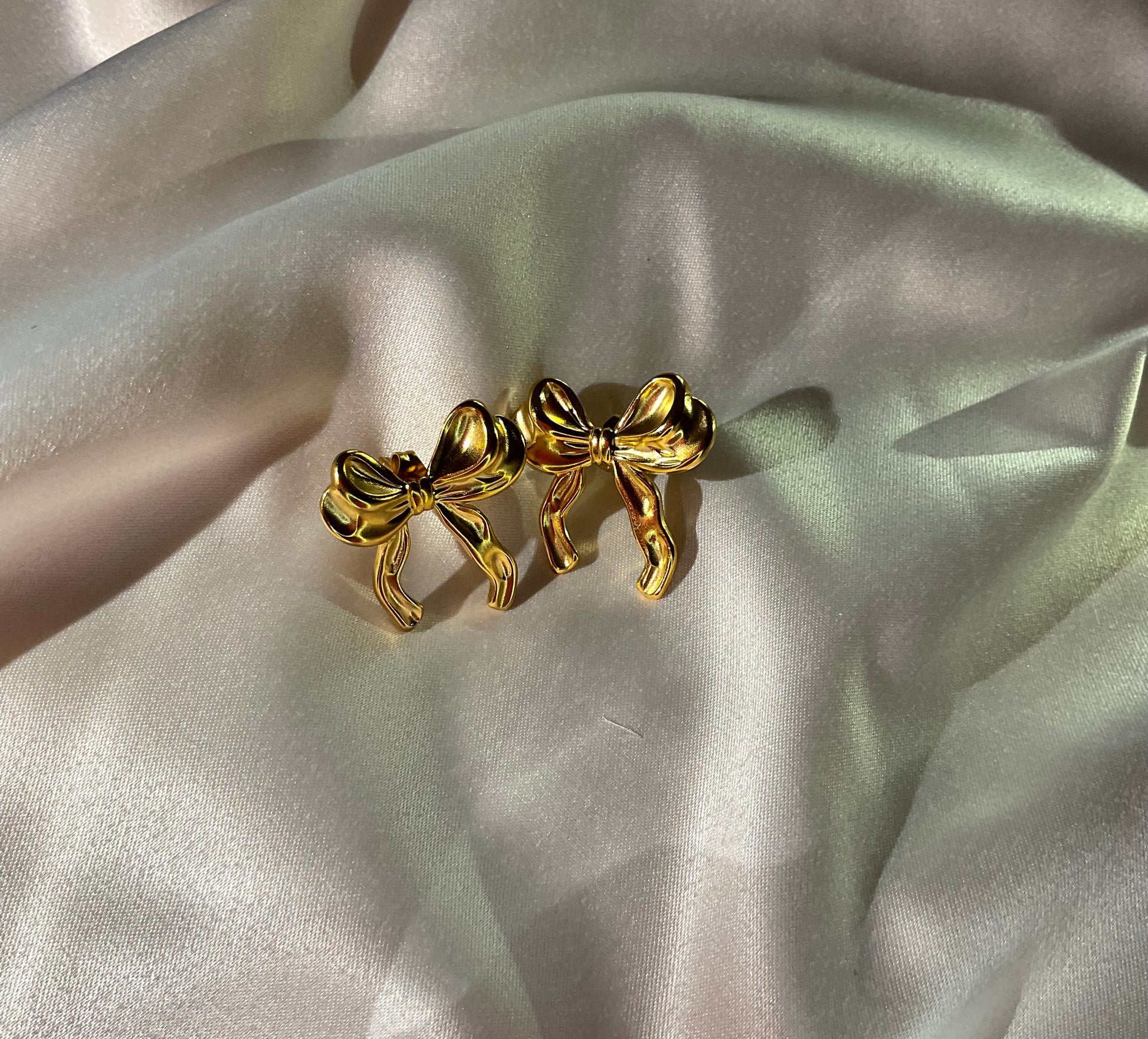 Orecchini Fiocco Oro - gioiello stile coquette acciaio inossidabile