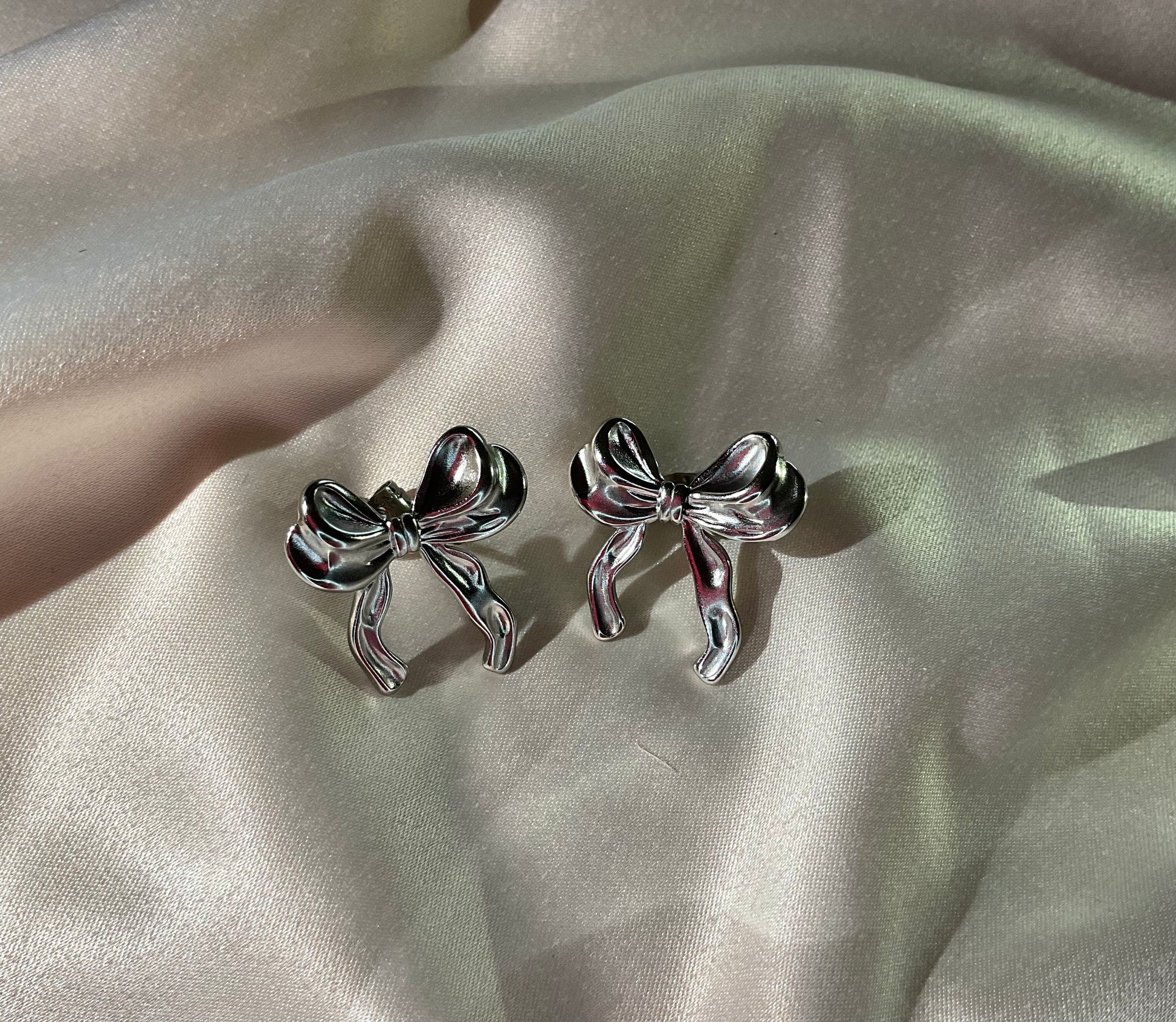 Orecchini Fiocco Argento - gioiello stile coquette acciaio inossidabile